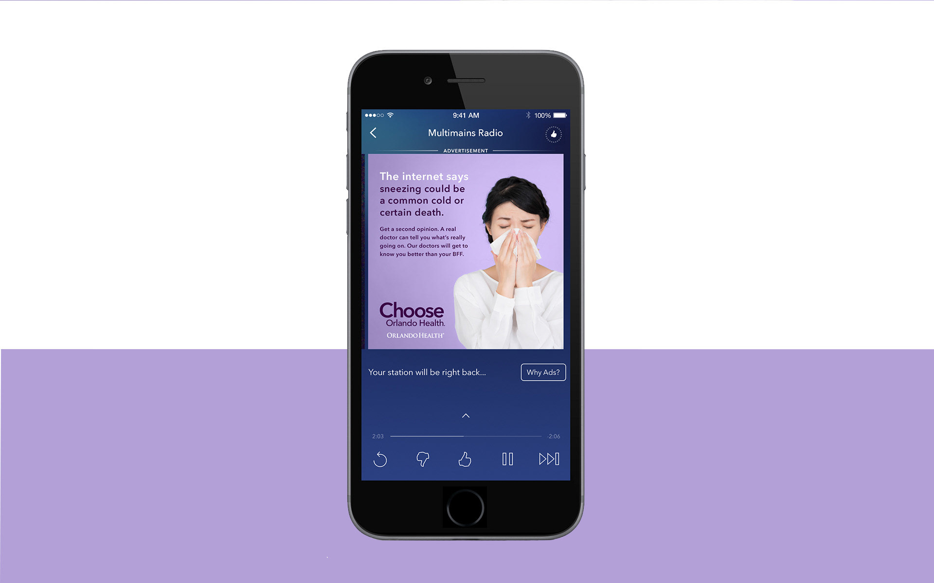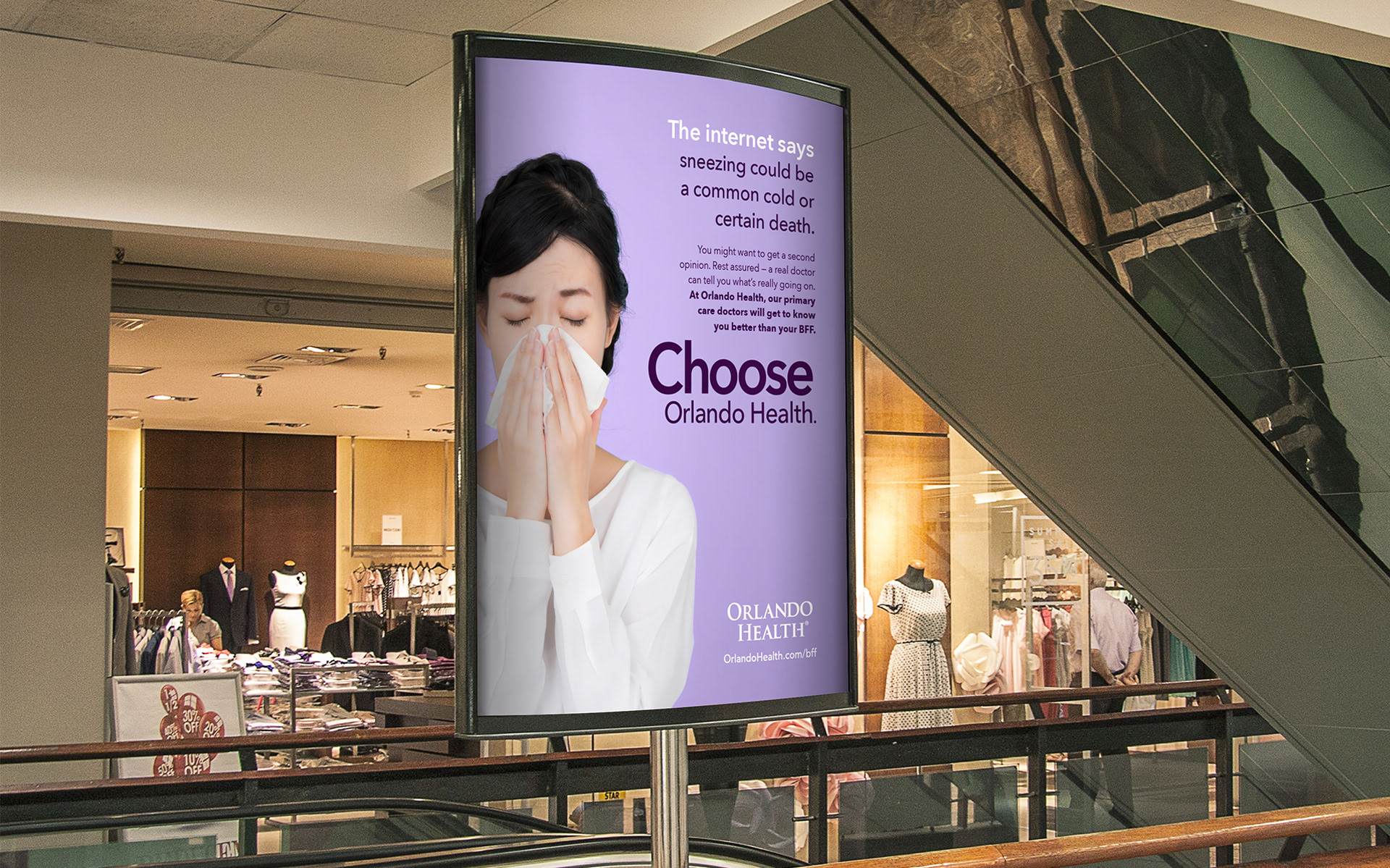 In a world of 'Dr. Google' and instant-care clinics, Central Florida’s largest primary care group needed to reclaim its connection with millennials. Along with my copywriting partner, we created the core concepts, headlines and design direction, navigating the challenge of keeping the work unique to millennials while staying cohesive under the Orlando Health brand umbrella. The final rollout featured two distinct creative directions across print, billboards, digital, landing pages, and radio—resulting in a cohesive, multi-channel effort that made primary care feel accessible to a younger demographic.